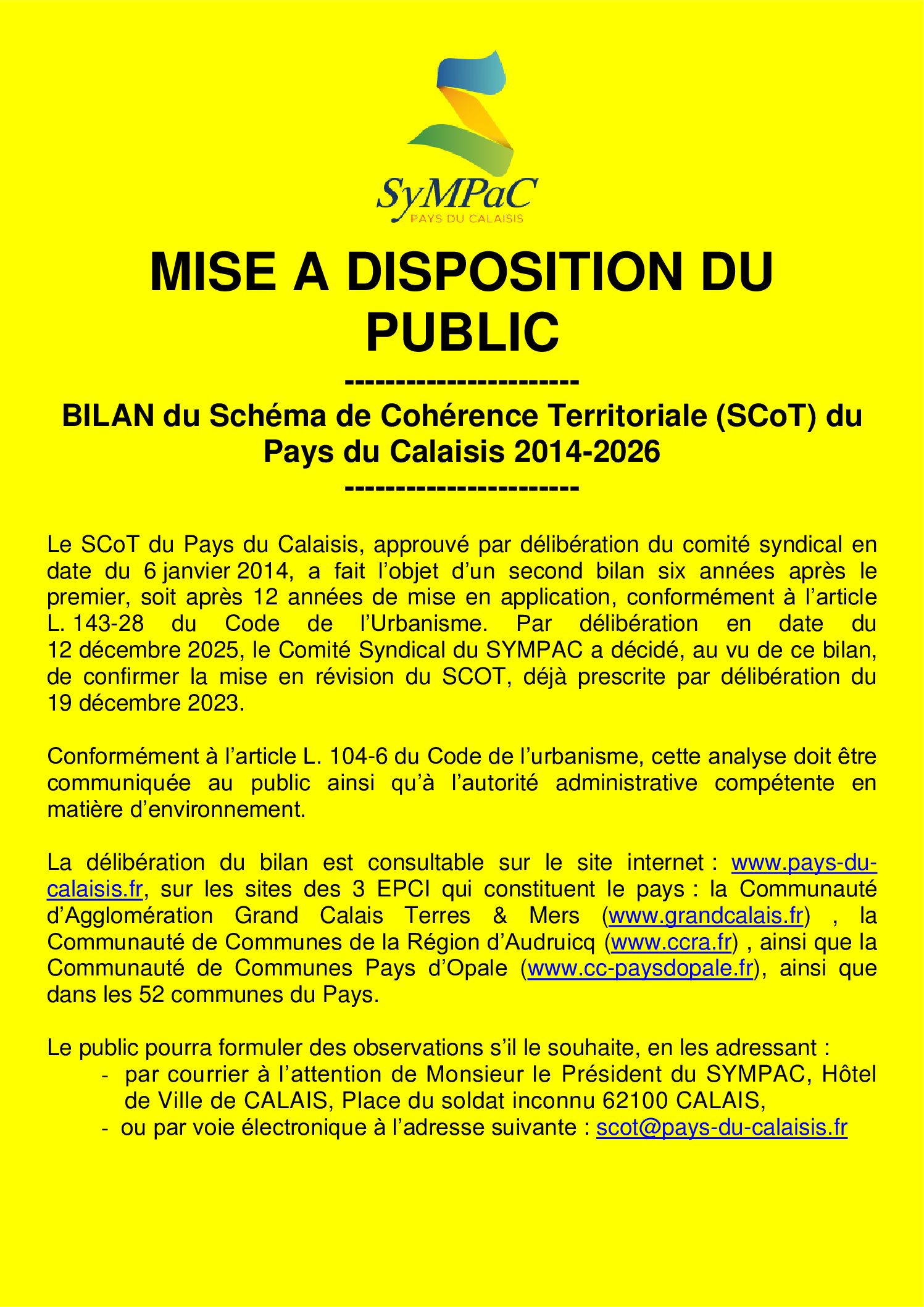Bilan du SCoT – Mise à disposition du public